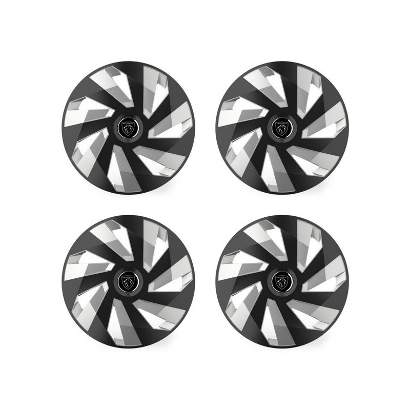 Puklice 15 Vector RC black and silver pre Peugeot (nové logo) na ocelové disky. Pre kolesá o veľkosti R15 so živicovými samolepkami Peugeot (nové logo).Получател :