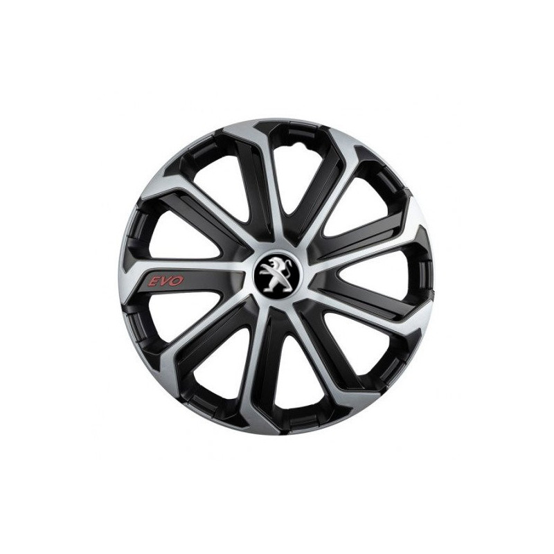 Puklice 15 Evo black&silver pre Peugeot (staršie logo) na ocelové disky. Pre kolesá o veľkosti R15 so živicovými samolepkami Peugeot (staršie logo).Получател :