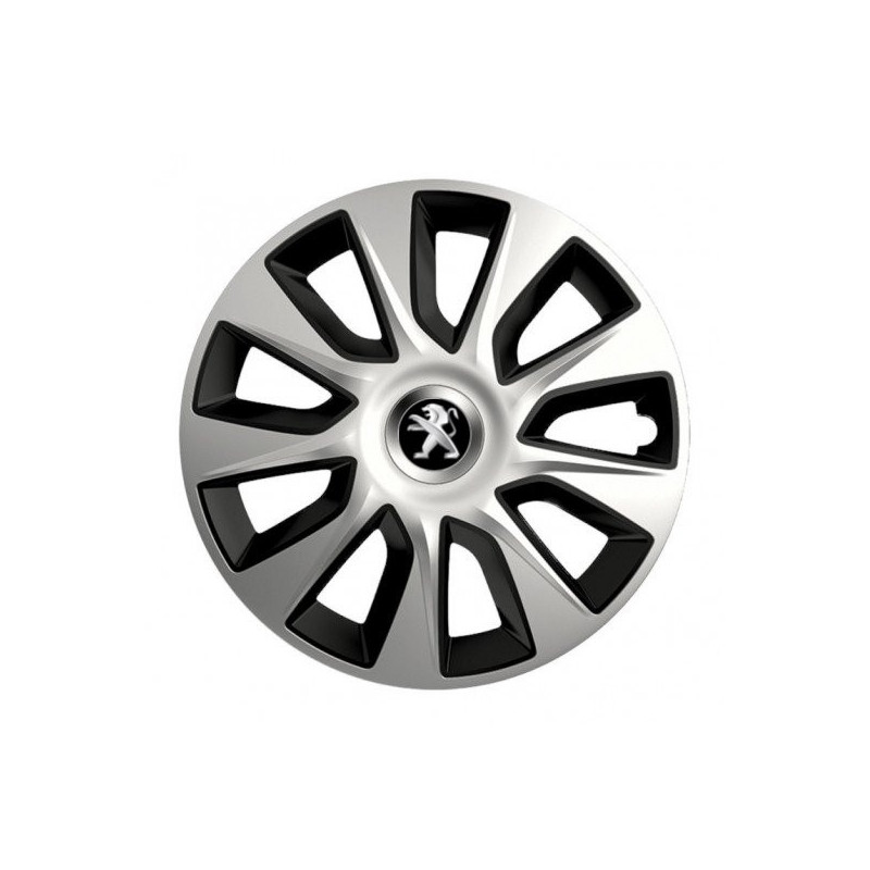 Puklice 15 STRATOS double colour - výpredaj pre Peugeot (staršie logo) na ocelové disky. Pre kolesá o veľkosti R15 so živicovými samolepkami Peugeot (staršie logo).Получател :