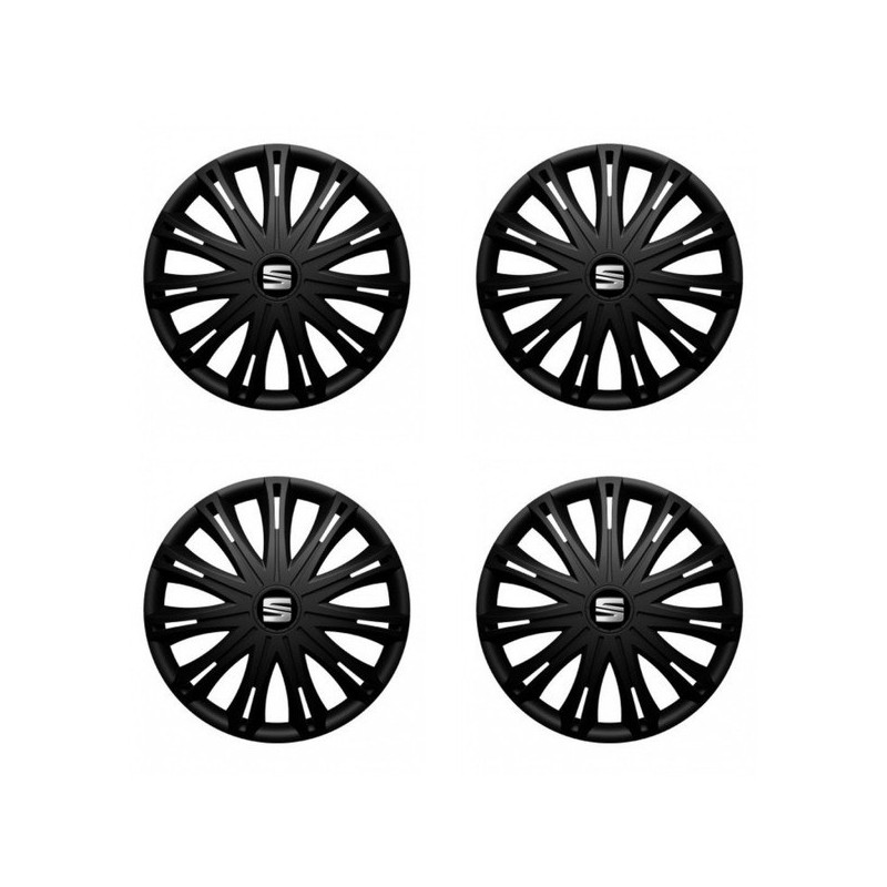 Puklice 14 SPARK BLACK1 pre Seat na ocelové disky. Pre kolesá o veľkosti R14 so živicovými samolepkami Seat.Получател :