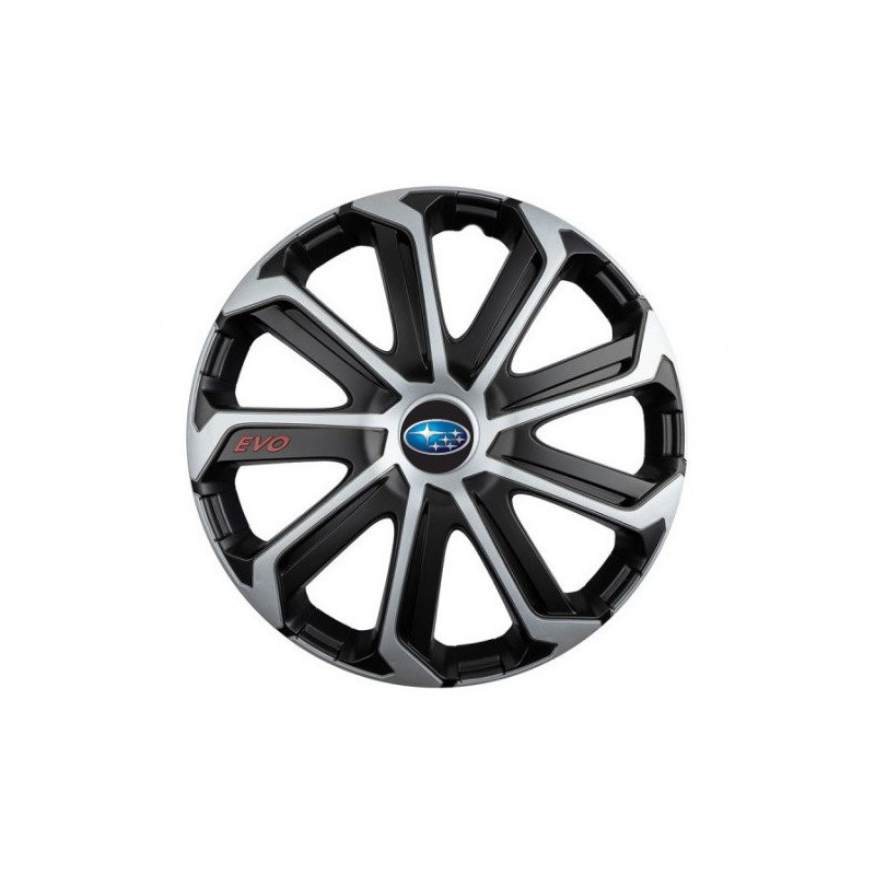 Puklice 16 Evo black&silver pre Subaru na ocelové disky. Pre kolesá o veľkosti R16 so živicovými samolepkami Subaru.Получател :
