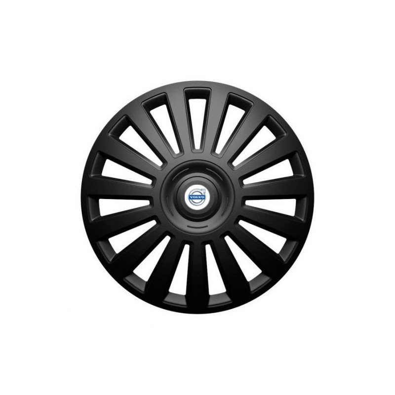 Puklice 14 Luxury black pre Volvo (biele) na ocelové disky. Pre kolesá o veľkosti R14 so živicovými samolepkami Volvo (biele).Получател :