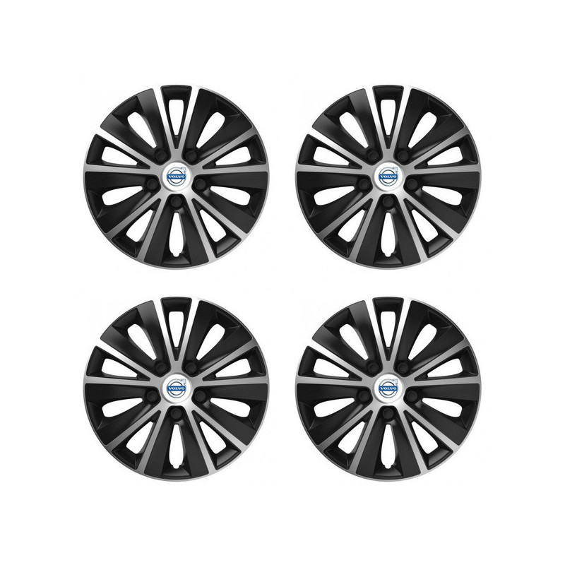 Puklice 14 RAPIDE silver and black pre Volvo (biele) na ocelové disky. Pre kolesá o veľkosti R14 so živicovými samolepkami Volvo (biele).Получател :