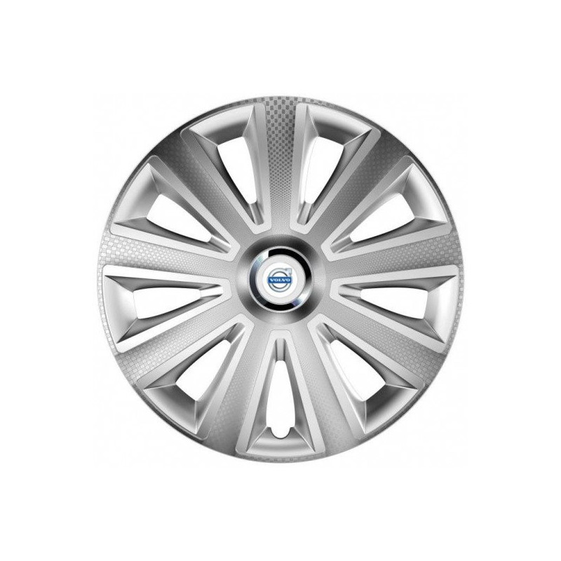 Puklice 15 Aviator carbon silver pre Volvo (biele) na ocelové disky. Pre kolesá o veľkosti R15 so živicovými samolepkami Volvo (biele).Получател :