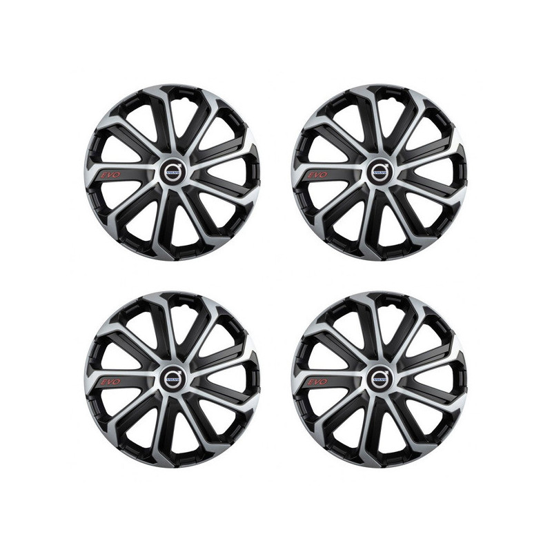 Puklice 15 Evo black&silver pre Volvo (čierne) na ocelové disky. Pre kolesá o veľkosti R15 so živicovými samolepkami Volvo (čierne).Получател :