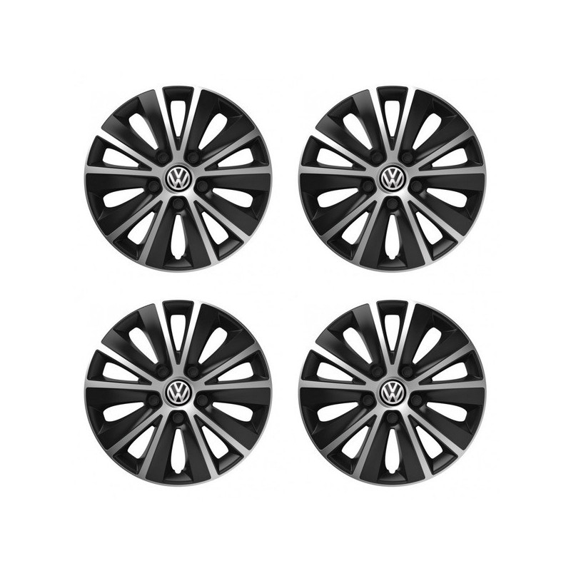 Puklice 14 RAPIDE silver and black pre VW (čierne) na ocelové disky. Pre kolesá o veľkosti R14 so živicovými samolepkami VW (čierne).Получател :