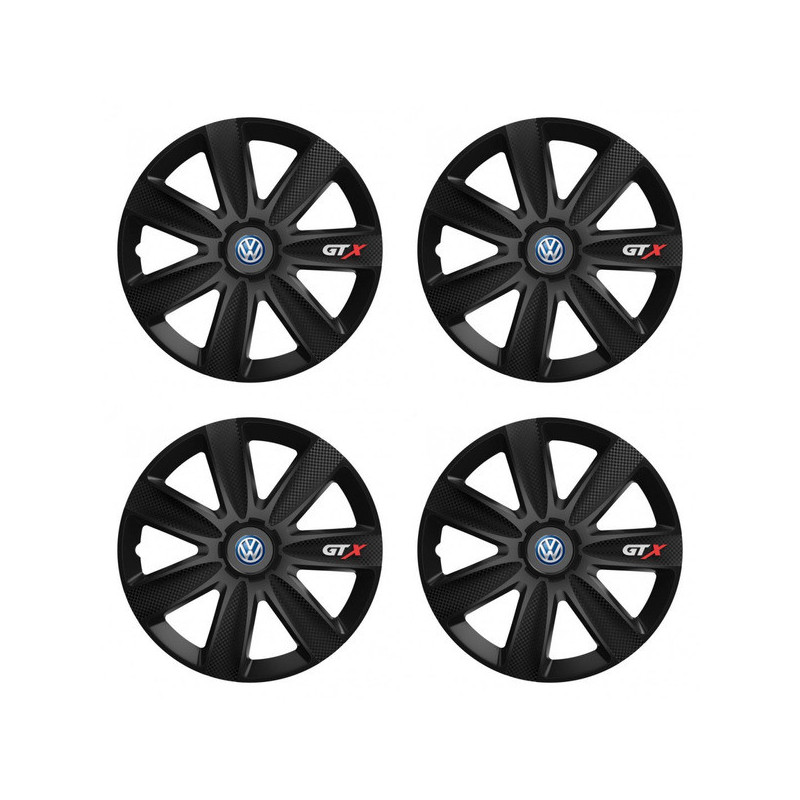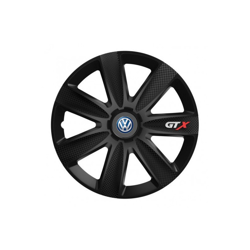Puklice 15 GTX CARBON black pre VW (modré) na ocelové disky. Pre kolesá o veľkosti R15 so živicovými samolepkami VW (modré).Получател :