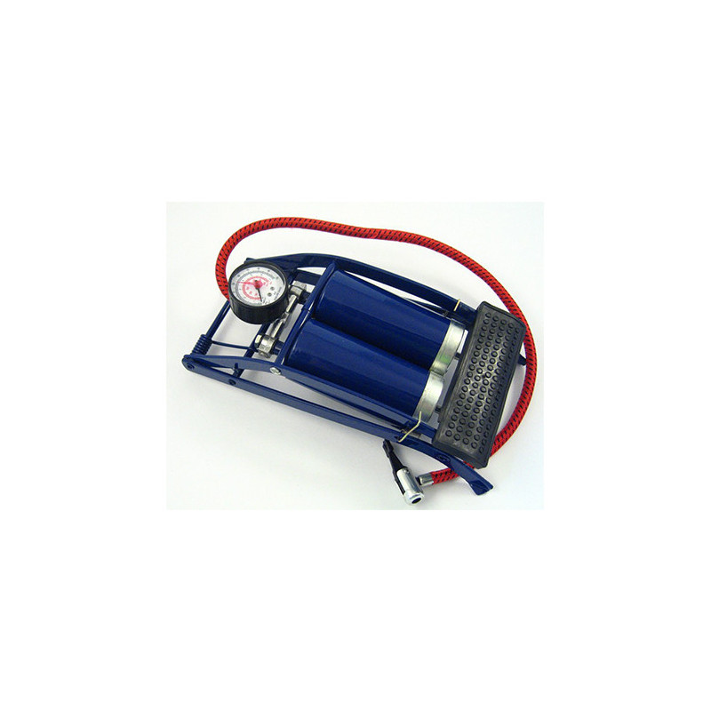 Kovová nožná hustilka s dvoma piestami a s manometrom, určená pre hustenie pneumatík osobných automobilov aj motocyklov. Súčasťou balenia sú prídavné adaptéry pre hustenie gumových matracov, lôpt apod.