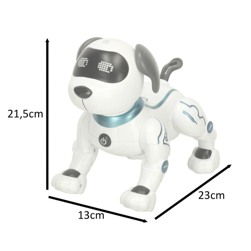 Interaktívny a plne robotizovaný psík je ideálnou hračkou pre každé dieťa, ktoré túži po vlastnom štvornohom kamarátovi. Tento robotický pes dokáže vykonávať rôzne triky – sadnúť si, postaviť sa na predné labky, ľahnúť si alebo štekať. Všetky príkazy sa mu zadávajú pomocou priloženého diaľkového ovládača. Vstavaný akumulátor zabezpečuje až 20 minút nepretržitej zábavy na jedno nabitie.