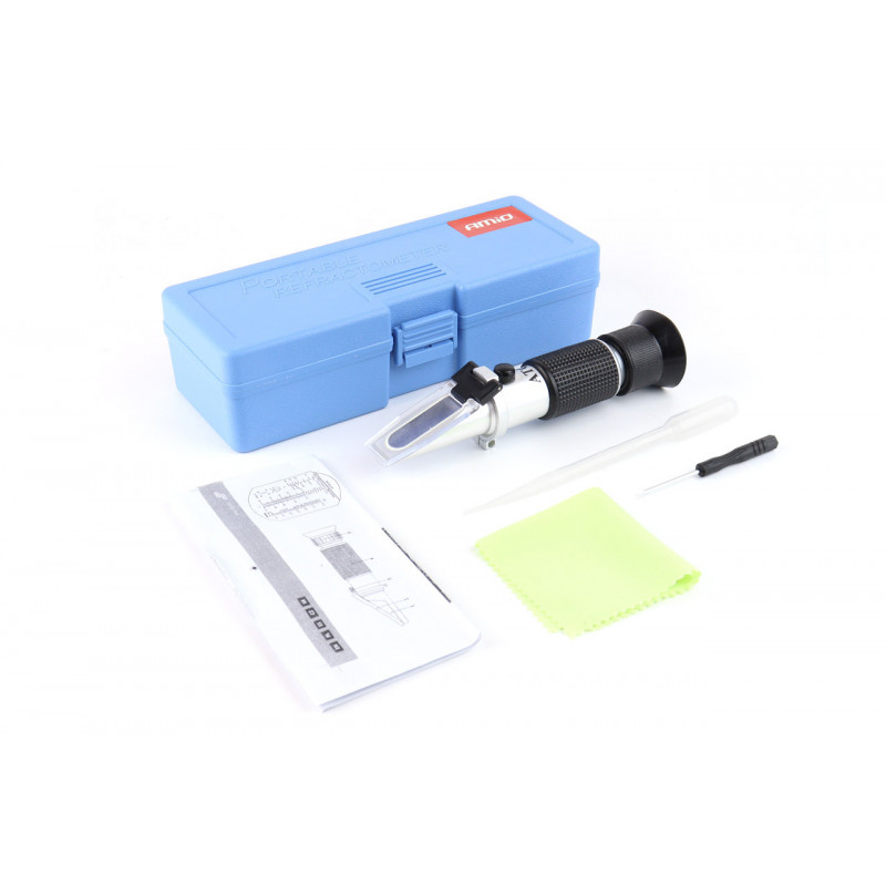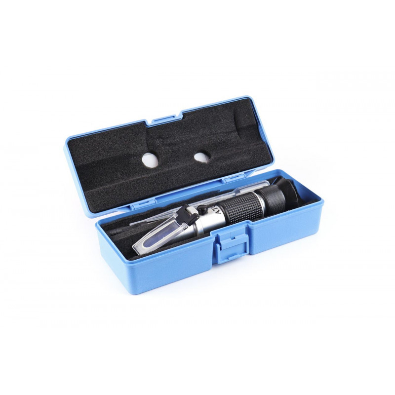 Profesionálny refraktometer na meranie prevádzkových kvapalín v osobných automobiloch, nákladných automobiloch a autobusoch. Je určený na stanovenie bodu tuhnutia kvapaliny do ostrekovačov, chladiacej kvapaliny propylénglykolu a etylénglykolu. Udáva tiež rozsah hustoty elektrolytu. Súprava obsahuje vzorkovaciu pipetu a čistiacu handričku. Všetko je zabalené v praktickej krabici.