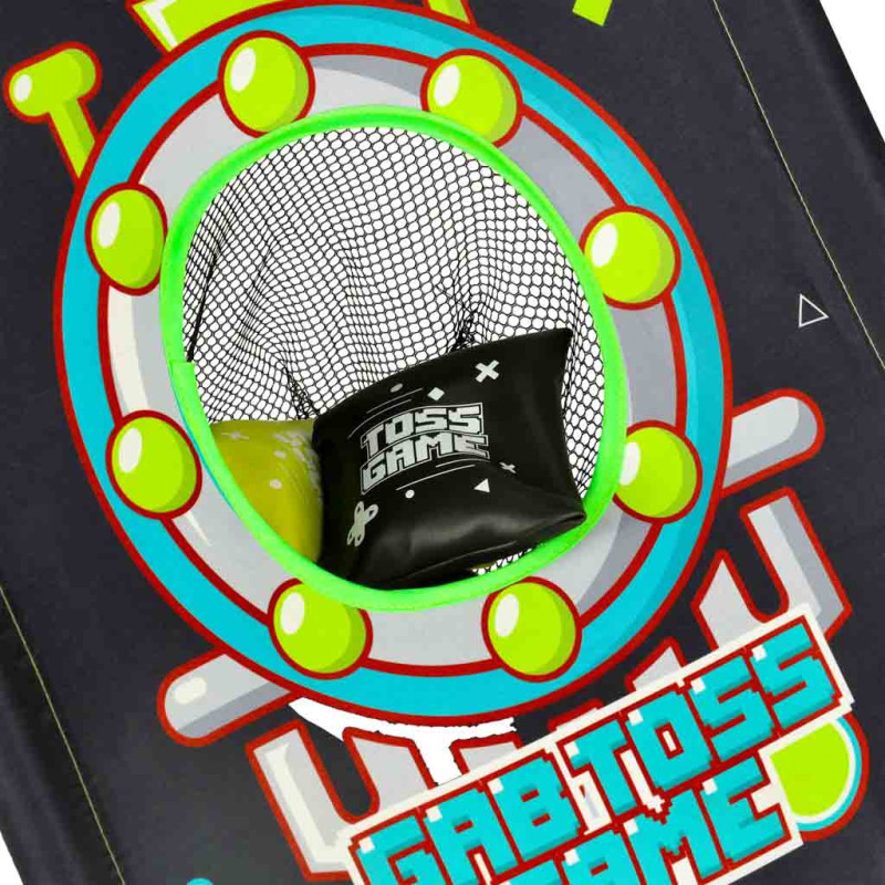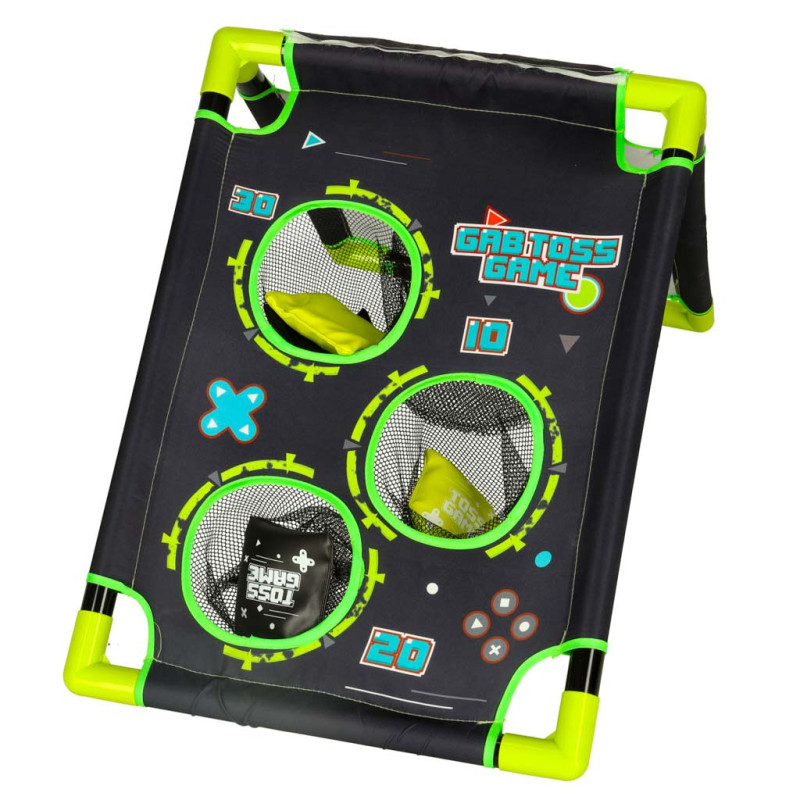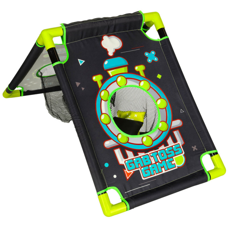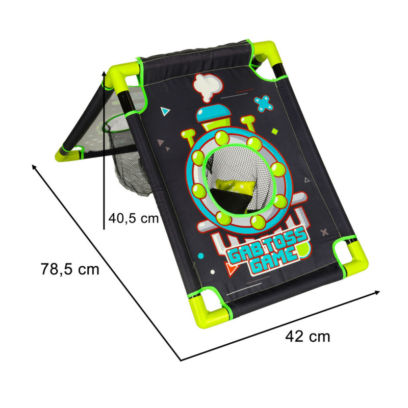 Rám terča je vyrobený z odolného plastu a látka z pevného polyesteru. Hra je ľahká, ľahko zložiteľná a vhodná na hranie v interiéri aj exteriéri – na dvore, v detskej izbe či telocvični.
