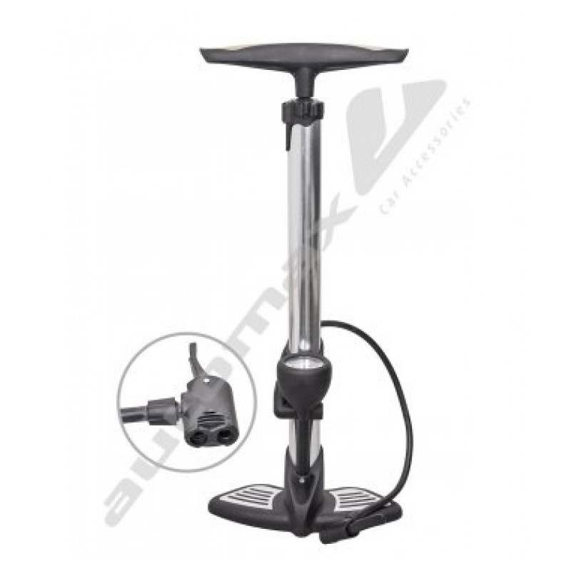 Vysoko kvalitná ručná pumpa na auto s tlakomerom. Pumpa je vyrobený z hliníka. Koniec vybavený dvoma otvormi pre ventily s rôznymi priemermi. Hmotnosť pumpy 0,68kg. Veľmi silná!