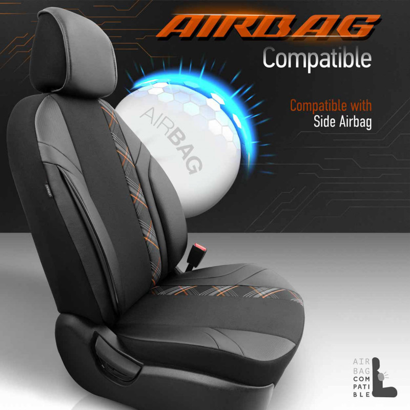 Štandardné poťahy majú certifikovaný šev AIRBAGový, vďaka čomu sú vhodné pre autá s bočnými airbagmi v sedadlách, ako aj pre štandardné sedadlá. Vďaka použitiu špeciálneho švu pokrývajú sedadlá úplne bez toho, aby narúšali prácu AIRBAGOV.