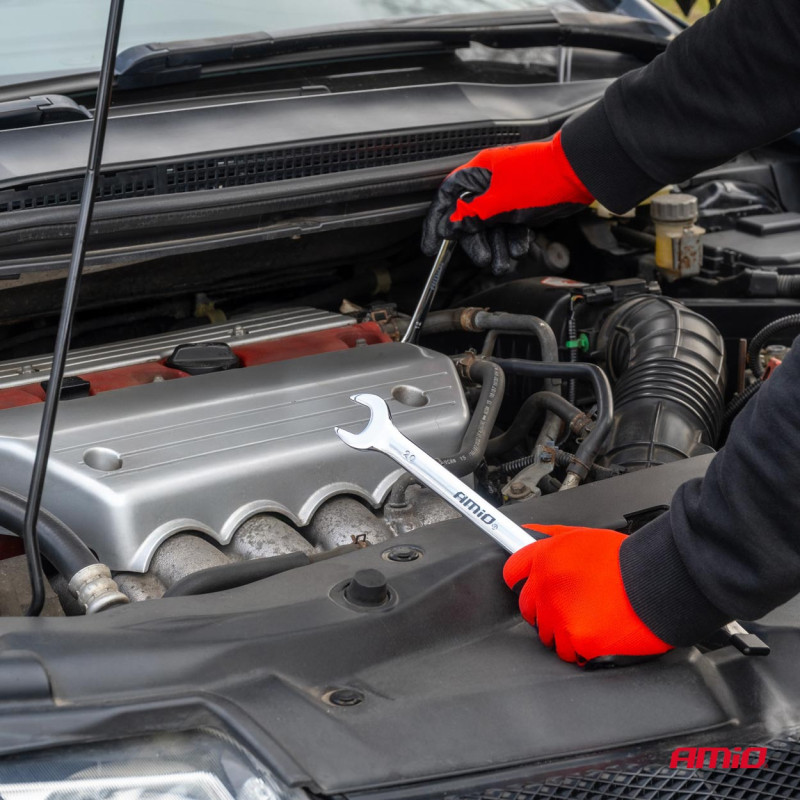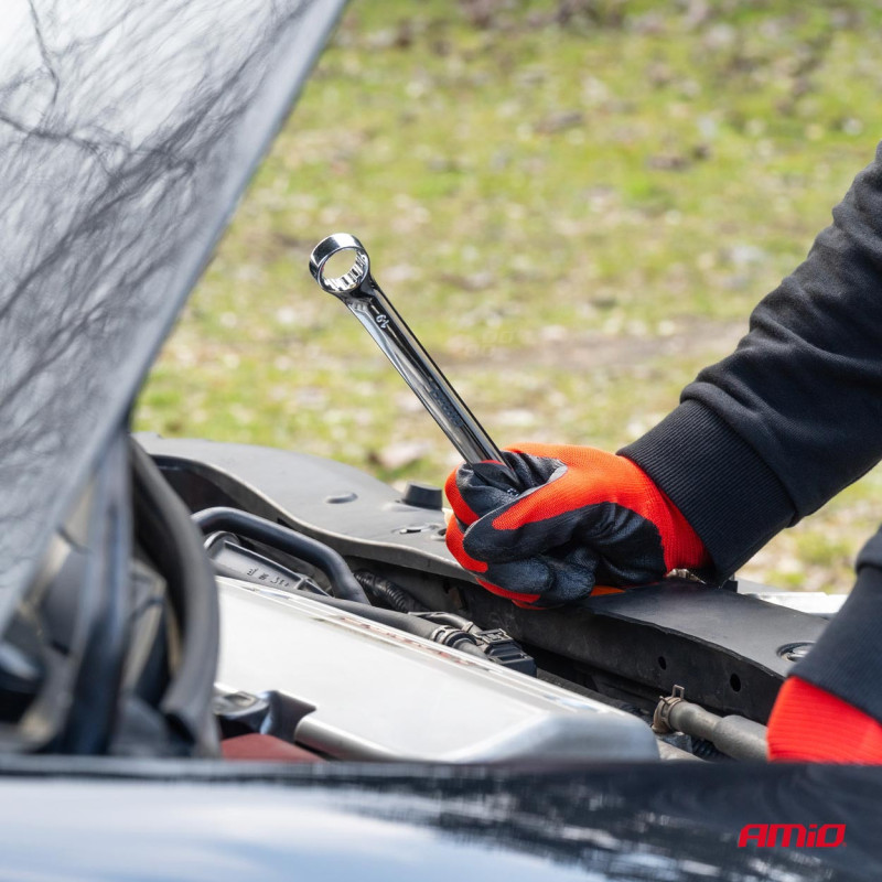 Sada kľúčov 8–19 mm, 8 ks – AMiO-04193 je kompaktná súprava očkoplochých kľúčov vyrobených z vysoko kvalitnej chróm-vanádiovej ocele (CRV). Tieto spoľahlivé nástroje kombinujú presnosť plochého kľúča s bezpečným uchopením očkového kľúča. Ideálne pre mechanické práce, montážne a opravárenské úkony v profesionálnej dielni alebo v domácej garáži..