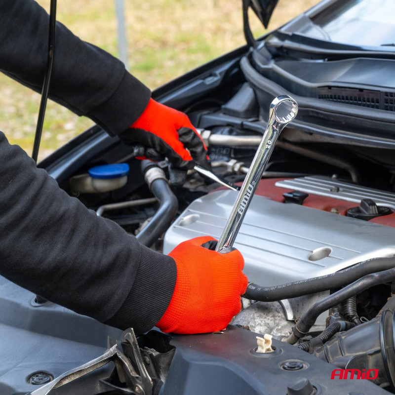 Sada kombinovaných kľúčov 6–32 mm, 25 ks – AMiO-04195 je profesionálna súprava očkoplochých kľúčov vyrobených z kvalitnej chróm-vanádiovej ocele (CRV), ktorá zaručuje vysokú odolnosť voči opotrebeniu a dlhú životnosť. Táto sada je ideálna pre mechanikov, technikov a domácich majstrov, ktorí potrebujú spoľahlivé nástroje na širokú škálu aplikácií.