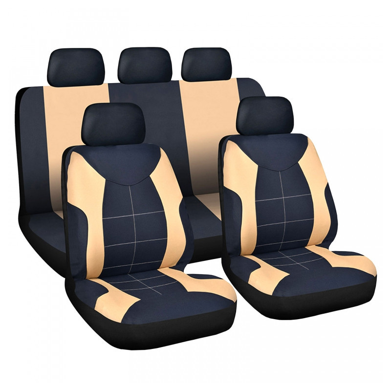 Sada poťahov na sedadlá - béžová / čierna 9 ks
