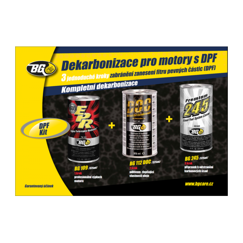 Filter pevných častíc (DPF) je senzitívna súčasť motora a jeho stav je závislý od jazdných podmienok a kvality spaľovania. BG dekarbonizácia podporuje správne spaľovanie, vysokú oxidačno-termálnu stabilitu oleja a redukuje zanášanie DPF, čo predlžuje jeho životnosť.