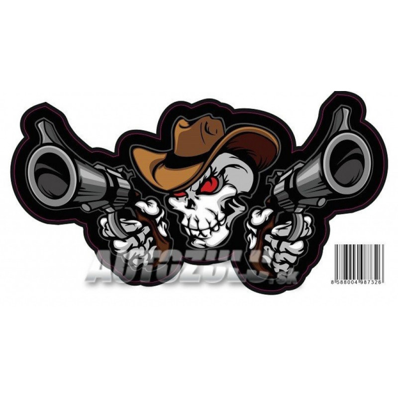 Krásna tlačená samolepka kostra pištolník. Tlačená na bielu fóliu.