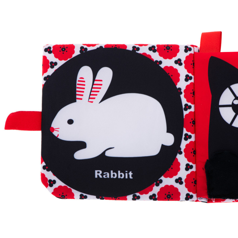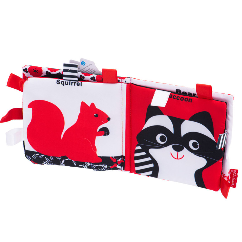 Kúzelná textilná kniha s kontrastnými vzormi je skvelá pre deti, ktoré práve začínajú objavovať svet. Biele, čierne a červené obrázky budú skvelým úvodom do poznávania zvierat.
