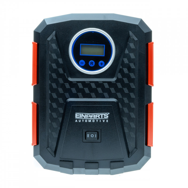 12V 10 Bar 150 PSI automobilový kompresor značky EINPARTS AUTOMOTIVE je spoľahlivý nástroj, ktorý zabezpečí rýchle napumpovanie automobilových pneumatík, bicyklov, športových míčov a mnohých ďalších predmetov. Napájaný zo zásuvky v aute. Ovládajte tlak pomocou elektronického manometra LCD a tlačidiel.