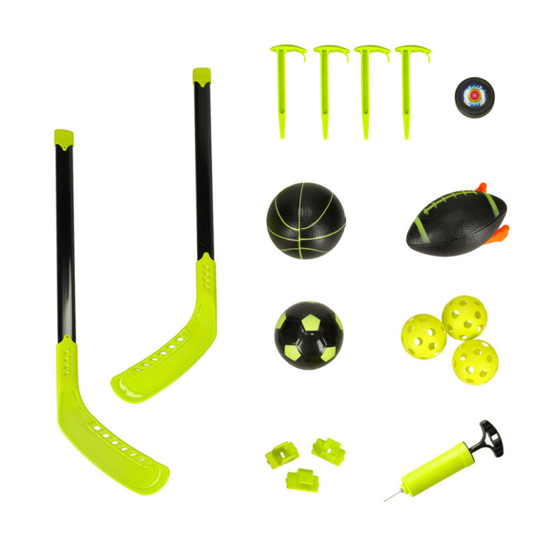 Multifunkčný športový set 6v1 ponúka deťom možnosť objaviť a trénovať rôzne športové disciplíny.