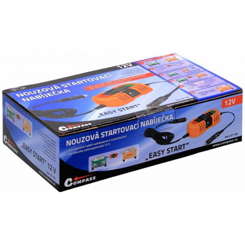Štartovacia nabíjačka pre núdzové nabitie autobatérie k naštartovaniu vozidla. Zapája sa do zásuvky autozapaľovača vozidla s nabitou batériou a vozidlá ktoré treba naštartovať. Určené pre napätie 12 V. Odpadá tak štartovanie cez klasické štartovacie káble, kedy je nutné u oboch vozidiel otvárať kapotu a zabezpečovať prístup k autobateriím. Vďaka celkovej dĺžke nabíjačky s káblami (4,5 metra) nie je nutné manipulovať s vozidlami, aby stáli veľmi blízko seba ako u bežných štartovacích káblov.