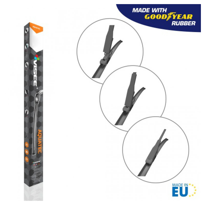Stierače sú vyrobené z vulkanizovanej vysoko kvalitnej prírodnej gumy, obohatenej o aditíva, ktoré prispievajú k výnimočnej odolnosti voči UV žiareniu, striedaniu teplôt a tiež treniu. Vynikajúca trvanlivosť vďaka svojim nožom z kaučukových zmesí AQUATEC. Moderný dizajn stieračov prispieva k množstvu požadovaných vlastností ako napríklad nízka hlučnosť pri stieraní, vysoká aerodynamická efektívnosť pri vysokých rýchlostiach, stieranie po celej dĺžke stierača resp. okna.