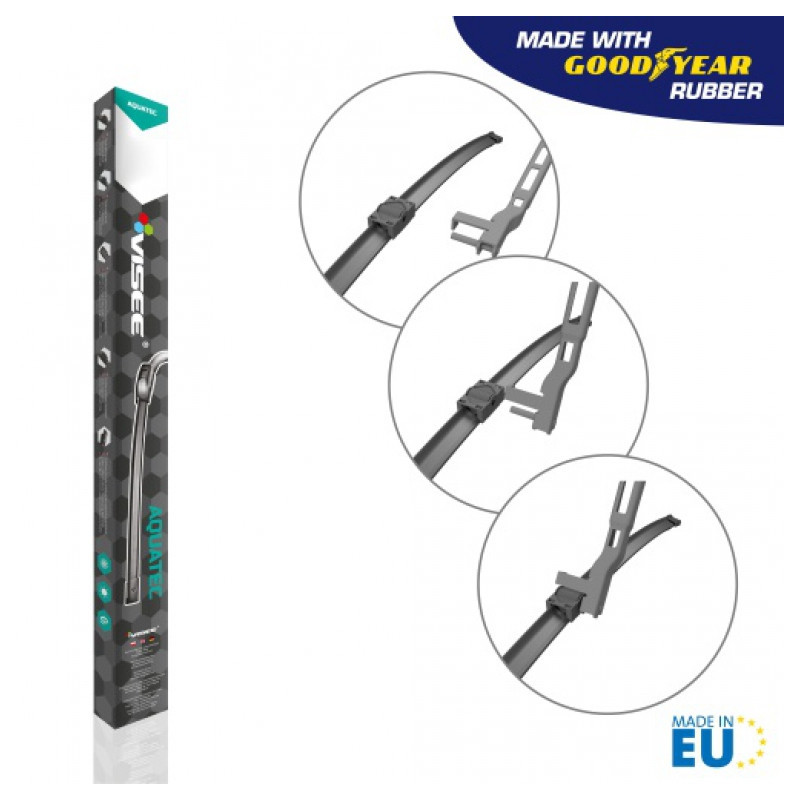 Stierače sú vyrobené z vulkanizovanej vysoko kvalitnej prírodnej gumy, obohatenej o aditíva, ktoré prispievajú k výnimočnej odolnosti voči UV žiareniu, striedaniu teplôt a tiež treniu. Vynikajúca trvanlivosť vďaka svojim nožom z kaučukových zmesí AQUATEC. Moderný dizajn stieračov prispieva k množstvu požadovaných vlastností ako napríklad nízka hlučnosť pri stieraní, vysoká aerodynamická efektívnosť pri vysokých rýchlostiach, stieranie po celej dĺžke stierača resp. okna.