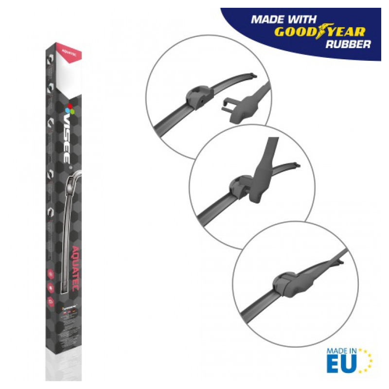 Stierače sú vyrobené z vulkanizovanej vysoko kvalitnej prírodnej gumy, obohatenej o aditíva, ktoré prispievajú k výnimočnej odolnosti voči UV žiareniu, striedaniu teplôt a tiež treniu. Vynikajúca trvanlivosť vďaka svojim nožom z kaučukových zmesí AQUATEC. Moderný dizajn stieračov prispieva k množstvu požadovaných vlastností ako napríklad nízka hlučnosť pri stieraní, vysoká aerodynamická efektívnosť pri vysokých rýchlostiach, stieranie po celej dĺžke stierača resp. okna.