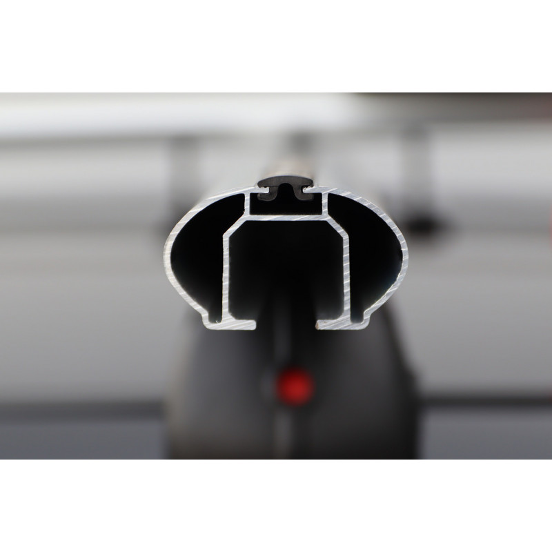Ľahký hliníkový nosič. Odolná konštrukcia, aerodynamický tvar a vysoká kvalita použitých materiálov sú hlavnými prednosťami tohto modelu. Praktickosť montáže umožňuje inštaláciu mnohých doplnkov súčasne pomocou príchytky alebo pohodlných úchytov typu T. Nosič je určený len pre montáž na štandardné (vyvýšené) pozdĺžne nosiče.