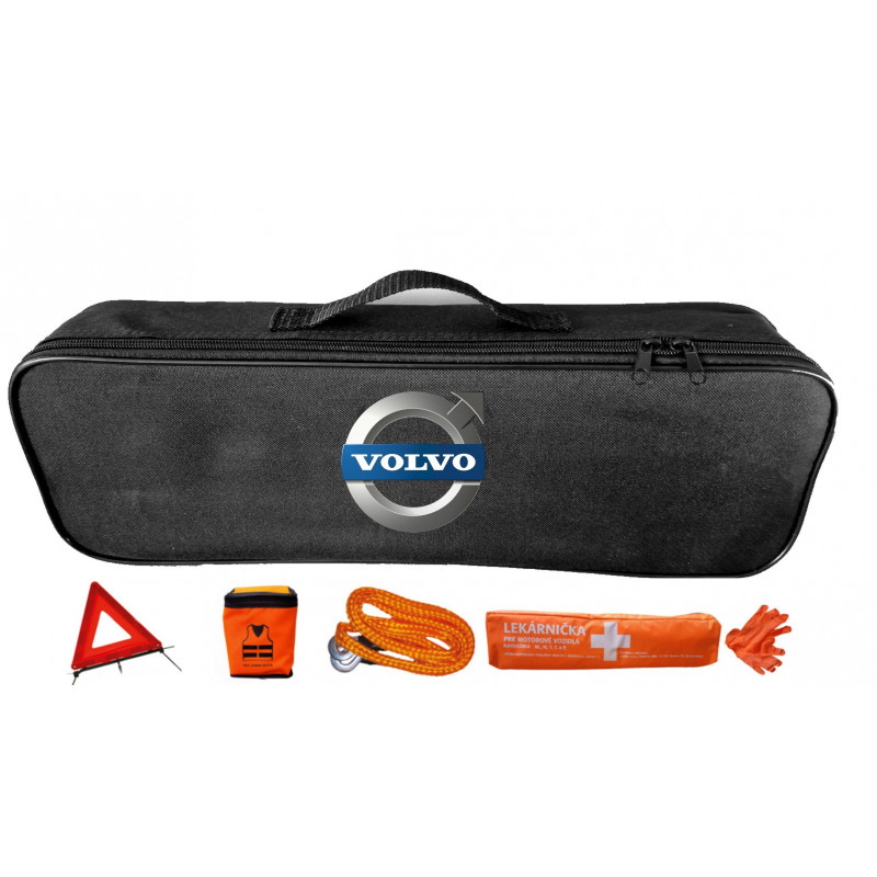 Obsah tašky: autolekárnička, výstražný trojuholník, ťažné lano 3t s karabínou, reflexná vesta v kapsičke, pár dielenských rukavíc