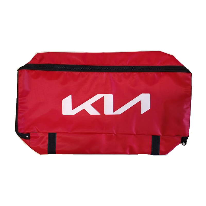 Taška je určená pre povinnú výbavu auta s logom Kia. Materiál tašky je PVC. Jedná sa o kvalitnú umývateľnú látku, sýtej farby. Potlač tašky sa neodlupuje. Na spodnej strane tašky sa nachádzajú suché zipsy, ktoré zabezpečujú bezproblémové upevnenie tašky povinnej výbavy vo vozidle.