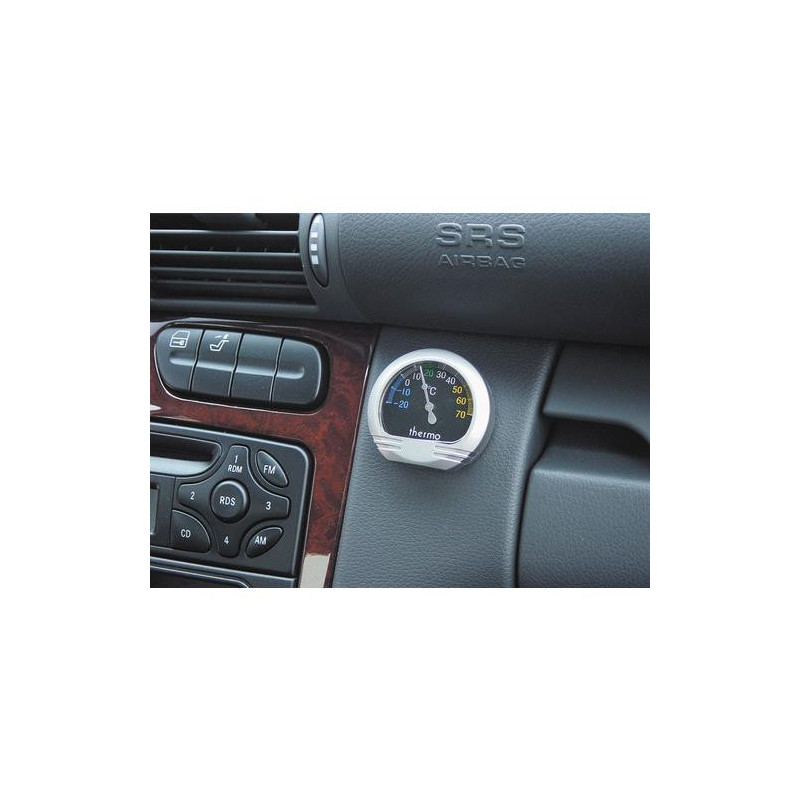 Analógový teplomer do auta ukazujúci vnútornú teplotu. Štýlový a praktický doplnok do Vášho auta Teplomer má na spodnej strane lepidlo, pomocou ktorého ho jednoducho pripevníte na palubovú dosku. Rozsah meranej teploty: -20°C až +70°C Rozmer: 53 x 50 x 15 mm