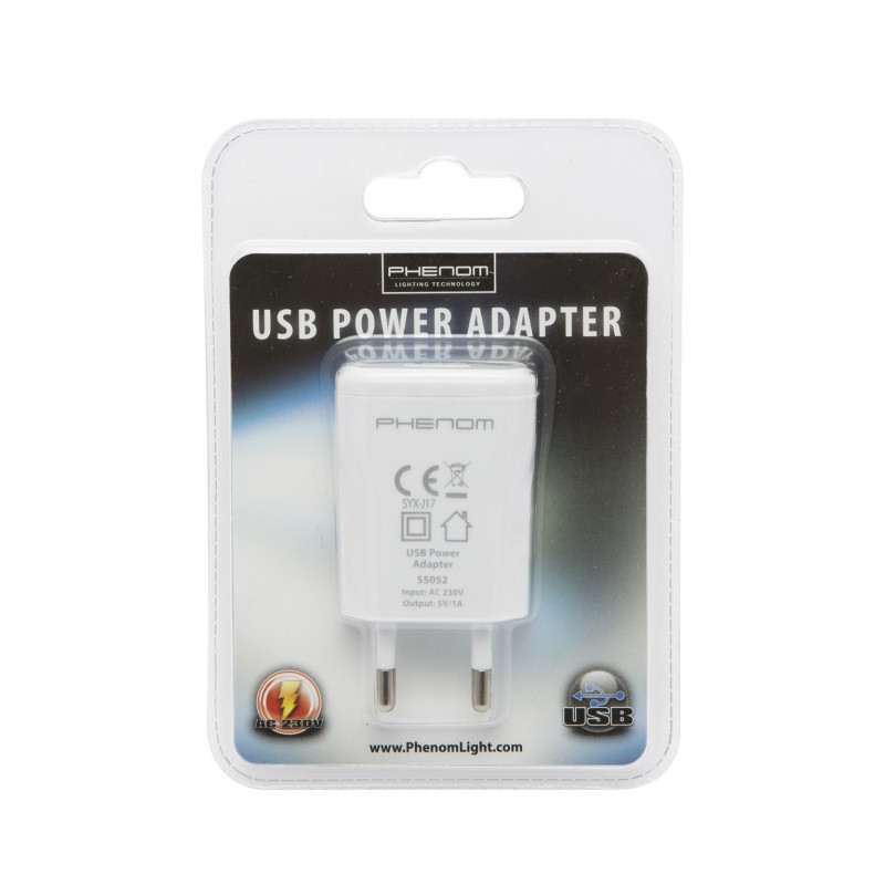 Umožňuje rýchle a účinné nabíjanie. Má kompaktné rozmery. Vhodný pre nabíjanie akýchkoľvek zariadení, pri ktorých je možné pripojenie k USB portu. Praktický doplnok k akumulátorovým produktom značky Phenom. Iba pre použitie v interiéroch!