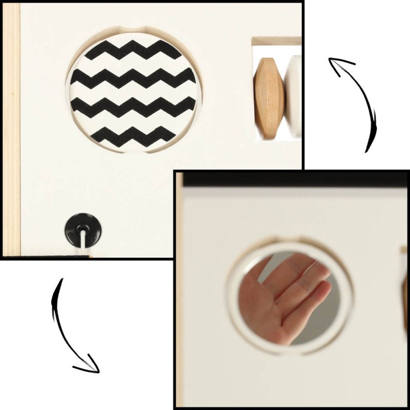 Predná strana chodítka je vybavená zábavnými a vzdelávacími aktivitami, ktoré podporujú rozvoj motoriky a logického myslenia: