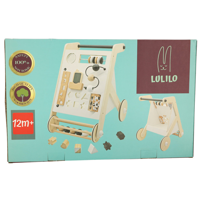 Drevené detské chodítko s interaktívnymi prvkami – prvé krôčiky s radosťou. Vek: 12m+