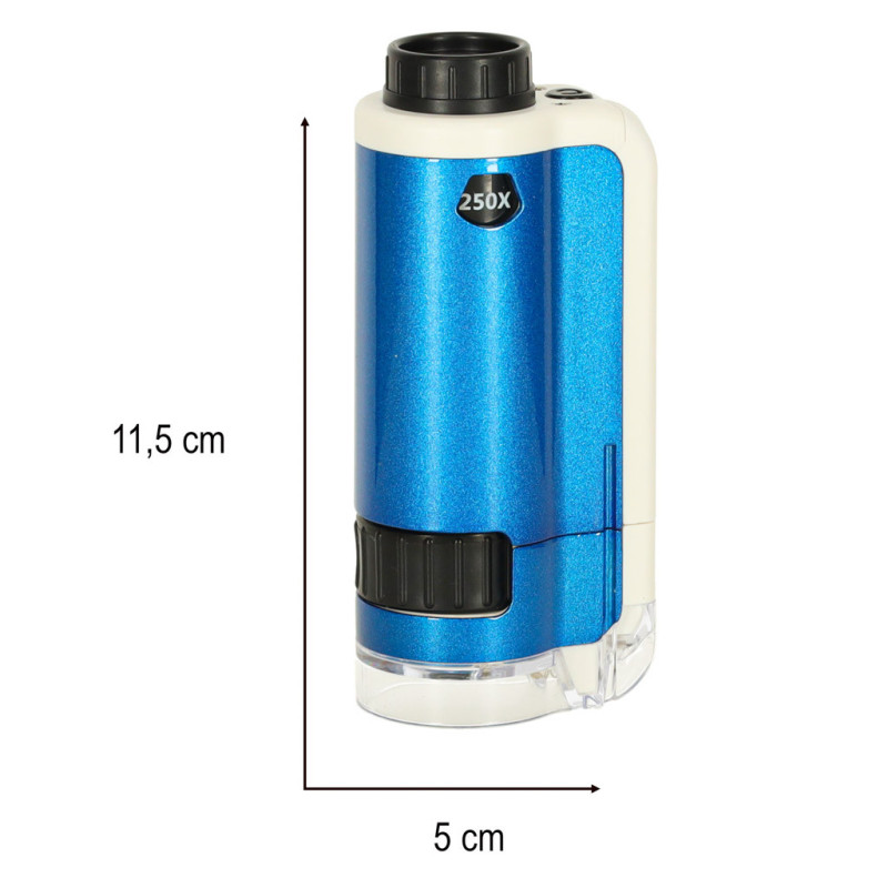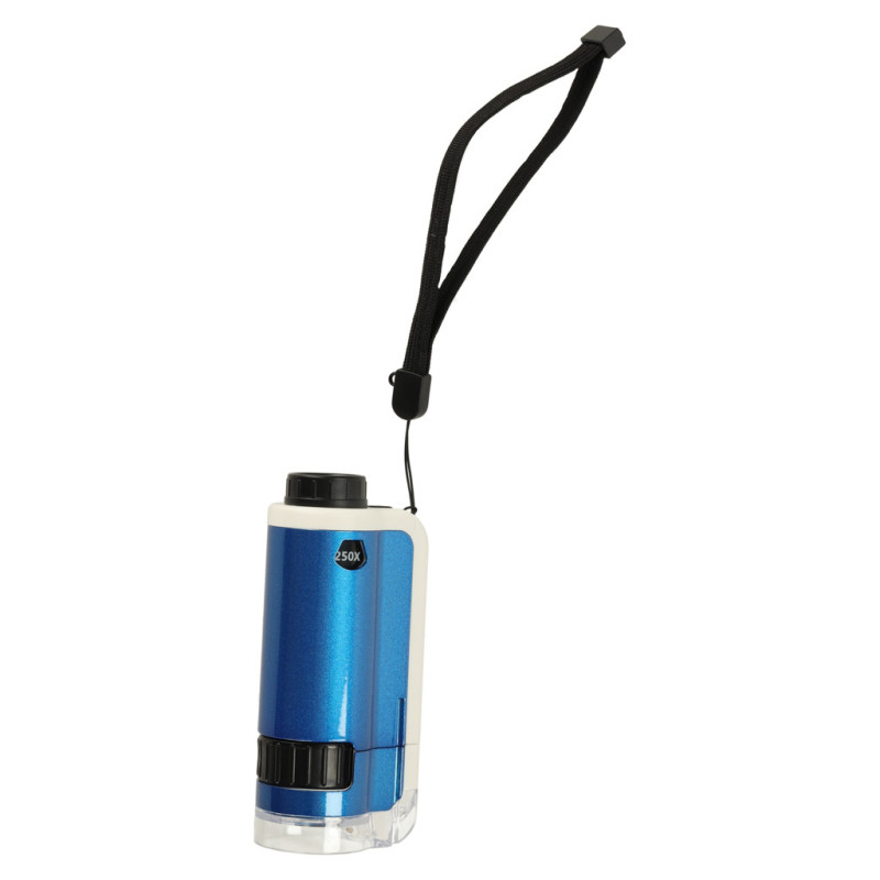 Vreckový mikroskop je vzdelávacia hračka, ktorá umožňuje deťom objavovať mikroskopický svet pomocou 2-násobného priblíženia – 100x a 250x. Vďaka vstavanému LED podsvieteniu ponúka jasný obraz a jednoduché skúmanie aj tých najmenších detailov. Súčasťou balenia je praktické puzdro a šnúrka na zavesenie, vďaka čomu je mikroskop ideálny na výlety alebo učenie vonku.