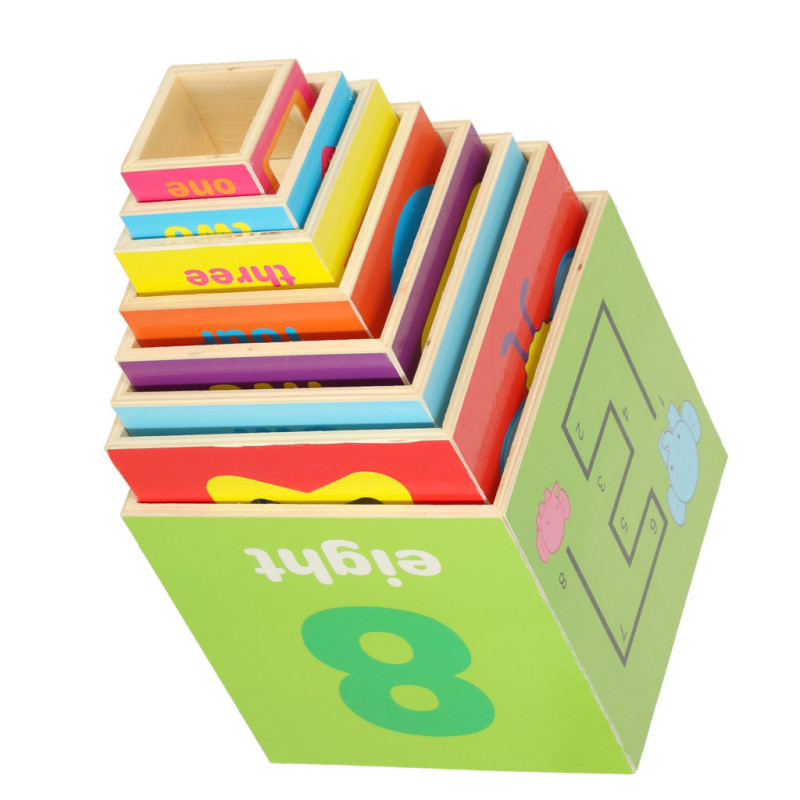 Súprava sa skladá z 8 farebných drevených kociek, ktoré sa dajú stavať jedna na druhú a vytvárajú pôsobivú vežu s výškou až 71 cm! Každý blok obsahuje až 8 aktívnych vzdelávacích strán, ktoré ponúkajú rôzne možnosti hry a učenia.